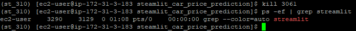 ec2-user 옆에 포트번호 확인후 kill 서버 죽이기
