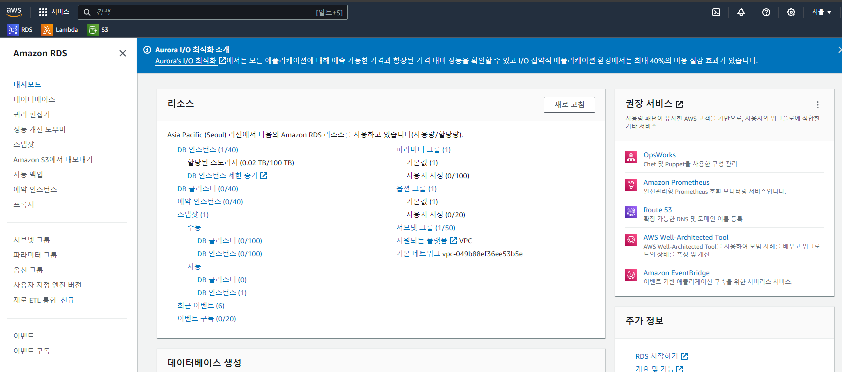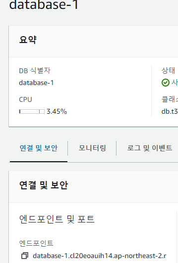aws RDS 접속 후 DB인스턴스 ->데이터베이스 생성 눌러줍니다.