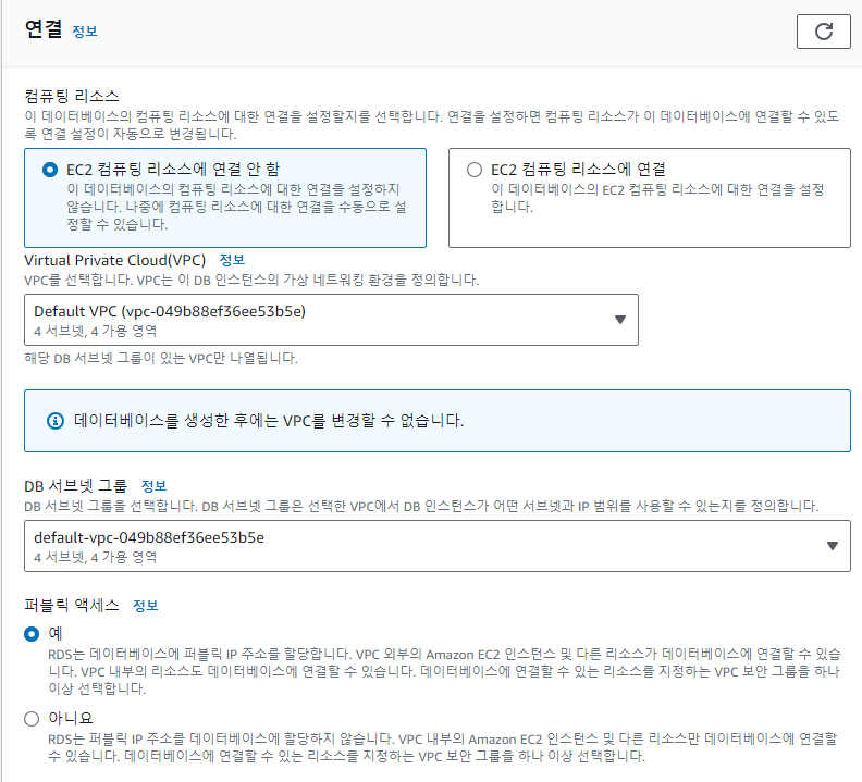 다른 부분 건들이지 않고 데이터 베이스 생성을 눌릅니다.