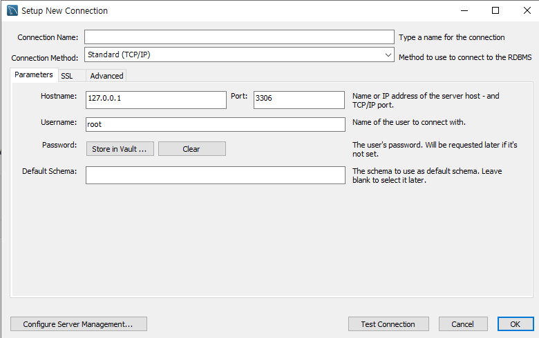Connection Name: RDS 만들때 입력한 인스턴스 식별자 이름을 입력합니다.