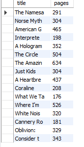 select substring(title,1,10) title, pages