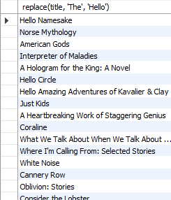 select replace(title, 'The', 'Hello')