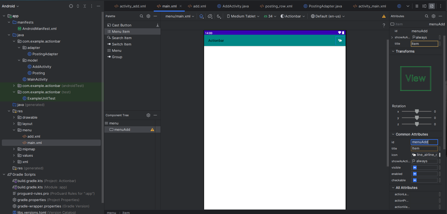 메인 엑티비티에서 쓸 xml를 생성해준다.